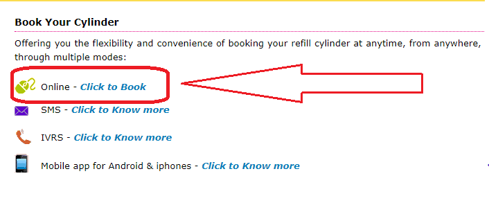 • SMS से गैस सिलिंडर बुक करने के लिये अपना मोबाईल नम्बर को अपनी गैस एजेंसी या कस्टमर केयर नंबर के माध्यम से रजिस्टर्ड करवायें।