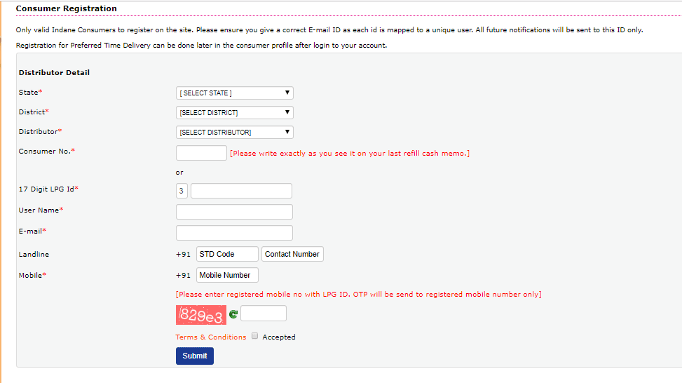 • फिर कंज्यूमर रजिस्ट्रेशन फॉर्म ध्यानपूर्वक भरे ।